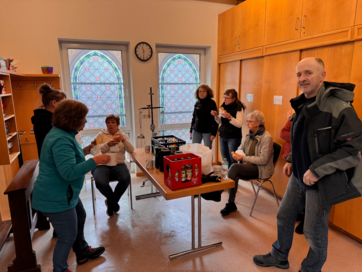 Die Altäre, die Kanzel, die beiden Beichtstühle, der Kreuzweg und Figuren wurden vom Staub und Spinnenweben befreit, die Bänke abgewaschen, die Glaswindfänge gereinigt, die Heizungs- und Lüftungsschächte wurde ausgesaugt und mit neuem Flies ausgelegt. Die Fußmatten in den Eingangsbereichen wurden abgesaugt und die Lampen im Mittelschiff und im Altarbereich wurden gereinigt. Die Schriftenständer wurden gereinigt und die Liedbücher sowie das Informationsmaterial wurde wieder in die Schriftenständer einsortiert. Die Empore und das Treppenhaus zur Empore wurden in dieser großen Putzaktion auch geputzt.